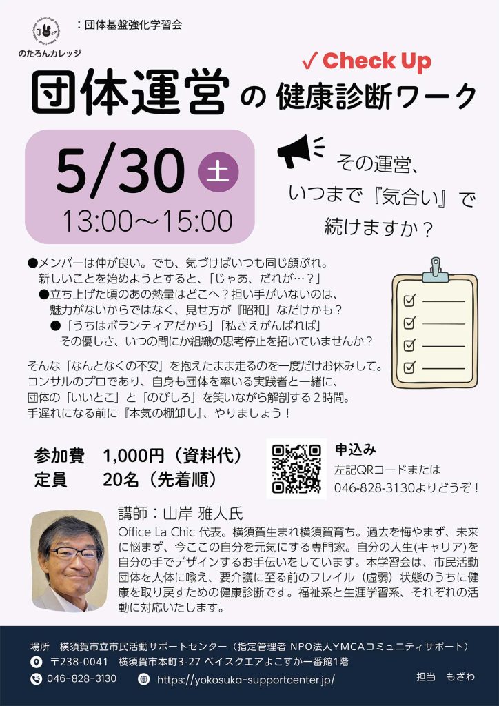 そんな「なんとなくの不安」を抱えたまま走るのを一度だけお休みして。コンサルのプロであり、自身も団体を率いる実践者と一緒に、団体の「いいとこ」と「のびしろ」を笑いながら解剖する2時間。手遅れになる前に『本気の棚卸し』、やりましょう!